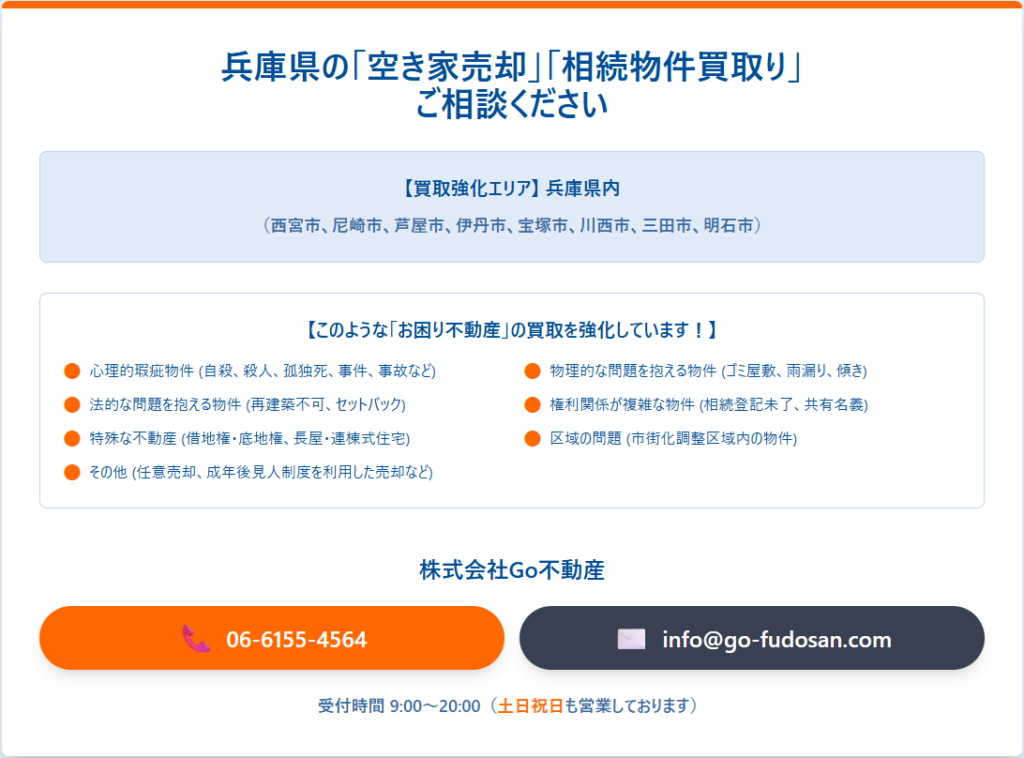 株式会社Go不動産は、関西一円、特に兵庫県内の不動産問題に日々向き合っています。