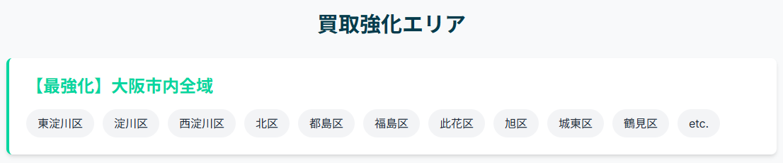 - 大阪市内全域 (特に 東淀川区、淀川区、西淀川区、北区、都島区、福島区、此花区、旭区、城東区、鶴見区)